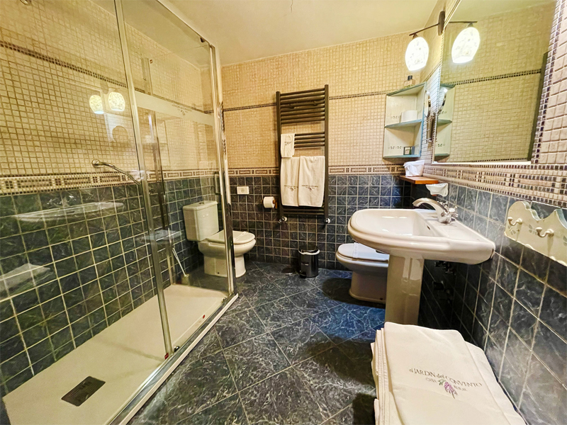 - Baño con ducha, bidé, radiador-toallero y secador de pelo